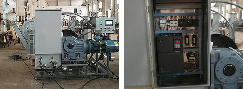 The winch applies variable frequency motor, which controlled by electric control system, drive the cable reel in or reel out. At the same time, it applies sprockets to drive wire traverse reciprocate in line so that the cables will be received/released in order.